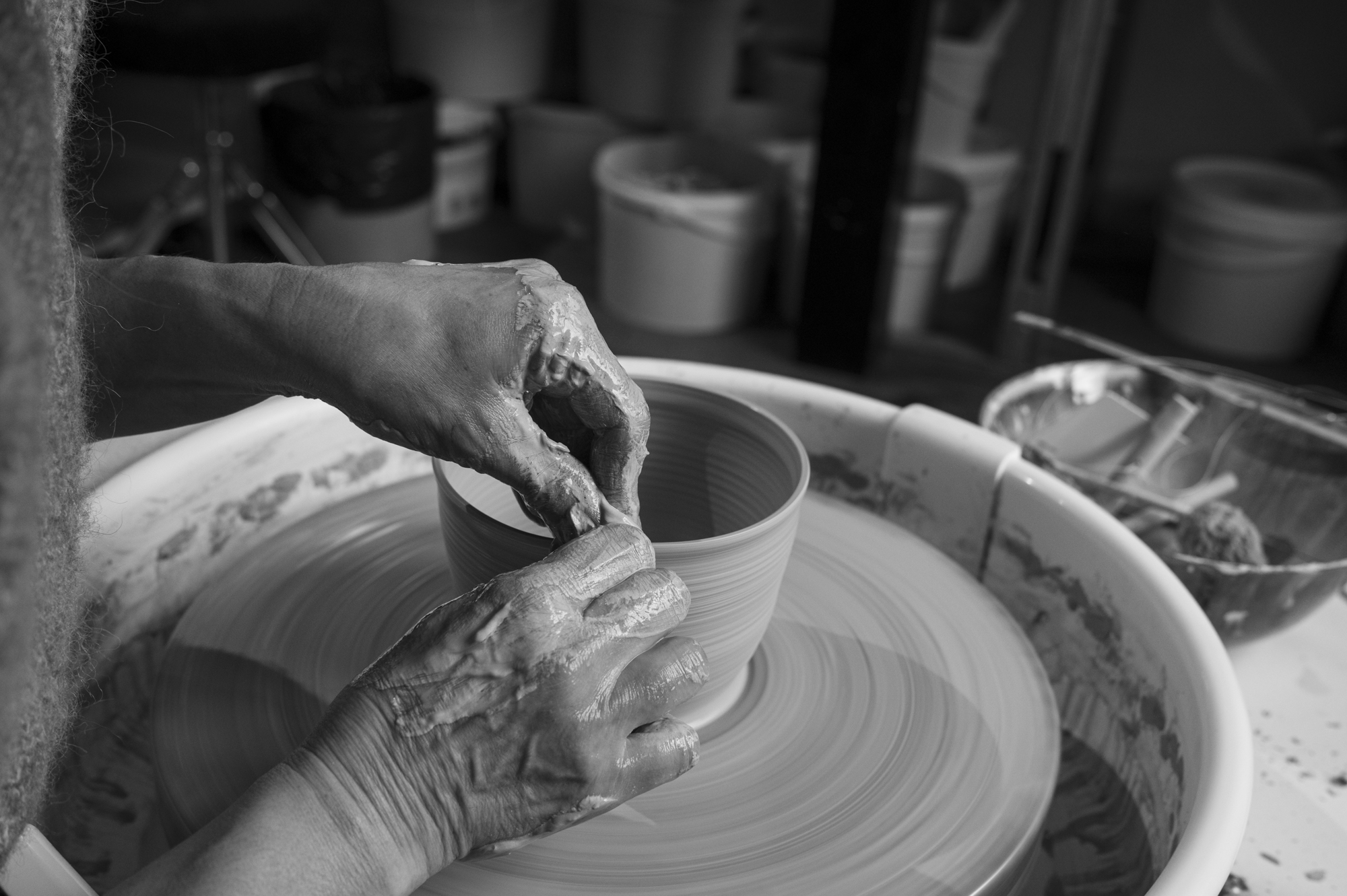 Une journée d’immersion à l’atelier, pour découvrir les gestes de base du tournage : la préparation de la terre, le centrage, la montée des parois de votre pièce au tour de potier.